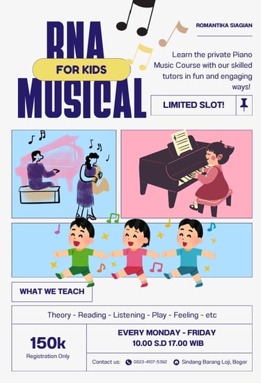 Hubungi rna musical untuk jadwal les piano pribadi.